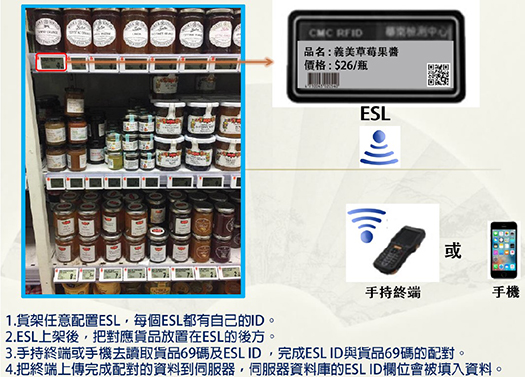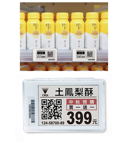 響應政府推行無紙化,透過電子標籤放置在貨架上, 替代傳統紙質價格標籤, 每個電子貨架標籤通過網路與商場內Sever相連, 並將最新的商品價格通過屏即時顯示出來。